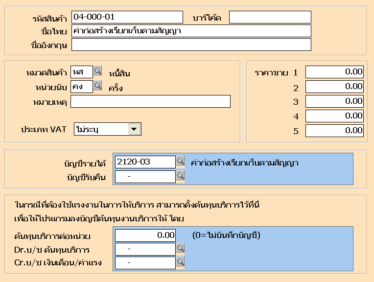 ขั้นตอนที่ 7 เตรียมข้อมูลสินค้าบริการ กำหนดที่ เมนูสินค้า ข้อ 4 รายละเอียดสินค้าบริการ