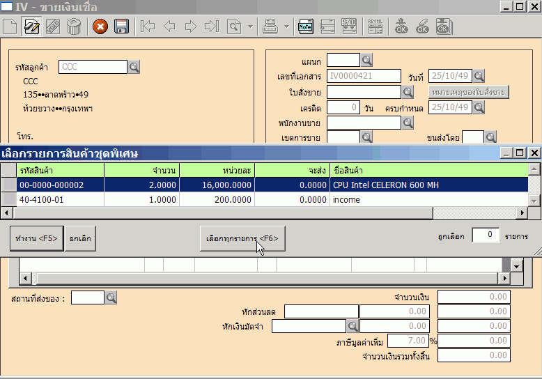 หมายเหตุ ถ้าเปิดบิลขายด้วยสินค้าชุดธรรมดา